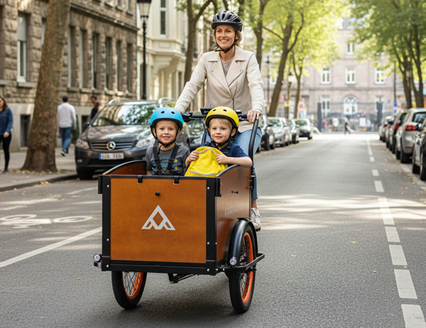This family bike — Addmotor E‑325 is your modern, eco‑friendly escape from daily car chaos, an electric cargo trike designed to glide past traffic and parking stress while keeping your kids comfortable, secure, and protected in any weather with the FREE rain canopy included with every E‑325 purchase. Its rock‑solid three‑wheel stability and impressive 550‑lb payload make school runs, grocery hauls, and weekend adventures feel effortless.