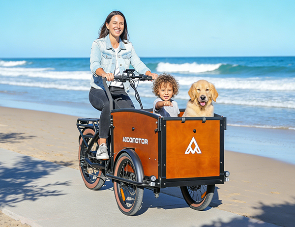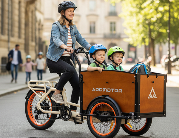 This family bike — Addmotor E‑325 brings easy fun to outdoor adventures, from picnics and camping trips to long beach days, rolling to the park, setting up at the campsite, and cruising the shoreline. Its spacious front cabin turns this electric bucket bike into the perfect ride for coolers, chairs, toys, and weekend gear, while giving small kids or pets a comfortable spot to come along. This front cargo bike keeps outdoor recreation simple, organized, and family‑friendly.