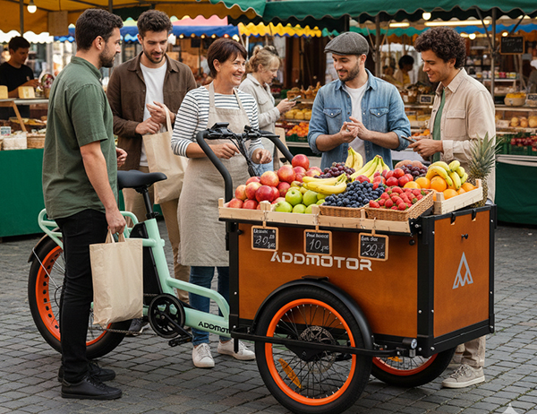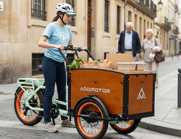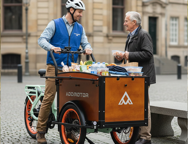 The Addmotor E‑325 supports community volunteers with the stability of an electric assist cargo bike. Its spacious front cabin turns this electric cargo bike into a practical way to move supplies, donations, and event materials throughout neighborhoods and community centers. As a versatile utility e bike, it keeps volunteer transport efficient, organized, and eco‑friendly—perfect for local outreach and community service.